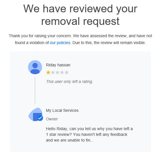 So from acknowledging our dispute to giving us an answer for each review, took around 20 minutes. But the verdict was a little strange, so see what you think.