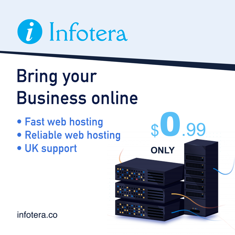 Affordable web hosting services in the UK are now available with Infotera Get online and start building your website today package starting $0.99 per month.